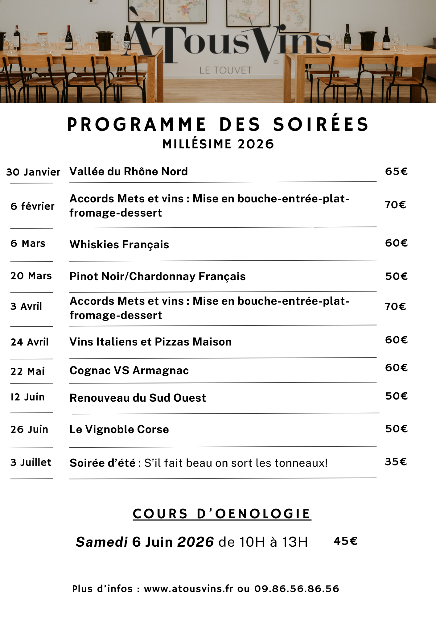 Contacter nous pour vous inscrire dès maintenant pour les prochaines dégustations de vin !